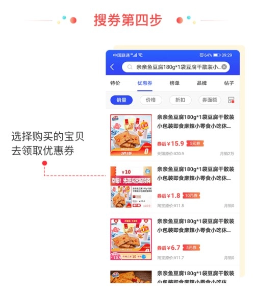 4、在搜索结果中找到目标商品,点击即可进入优惠券页面领取使用。