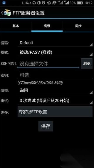 2. 作为适用于Android设备的FTP/SFTP/FTPS客户端,具备下载、上传、同步、共享以及断点续传等功能。