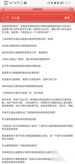 3、以灭火器为例,点击搜索后,便可看到与灭火器相关的问答。