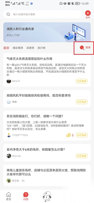 1. 开启消防百事通app,于问答界面里点击搜索。