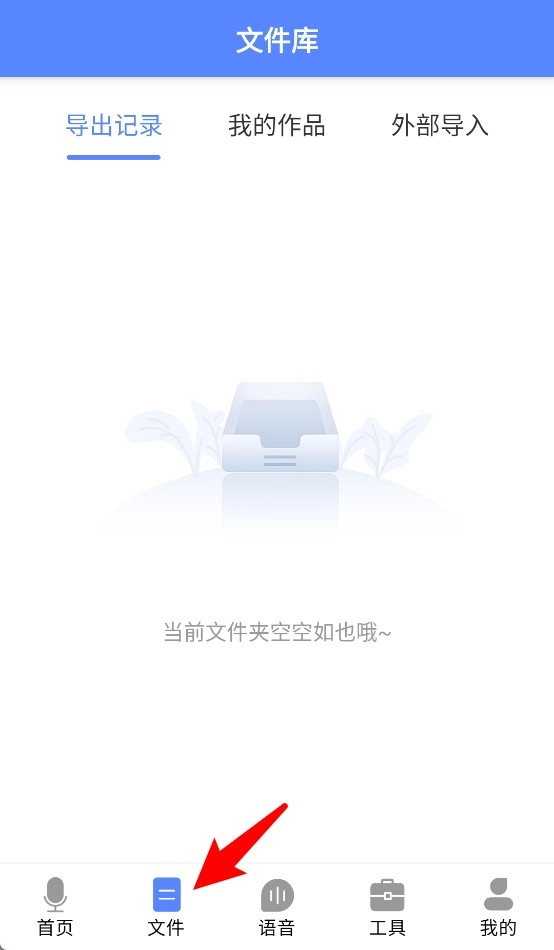 2、切换“文件”页可查看导出记录、个人作品或导入外部音频文件。