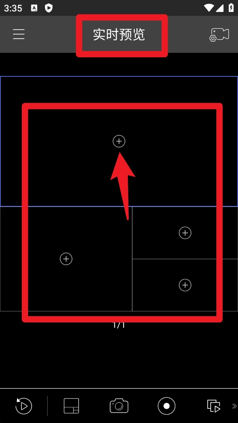 2. 注册成功后进入首页,点击“实时预览”页面中画面中的加号图标以添加设备。