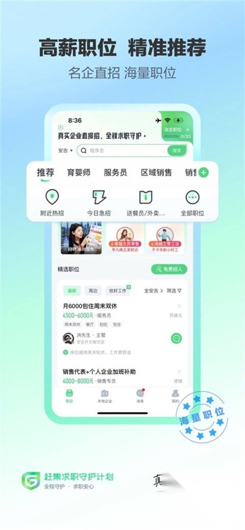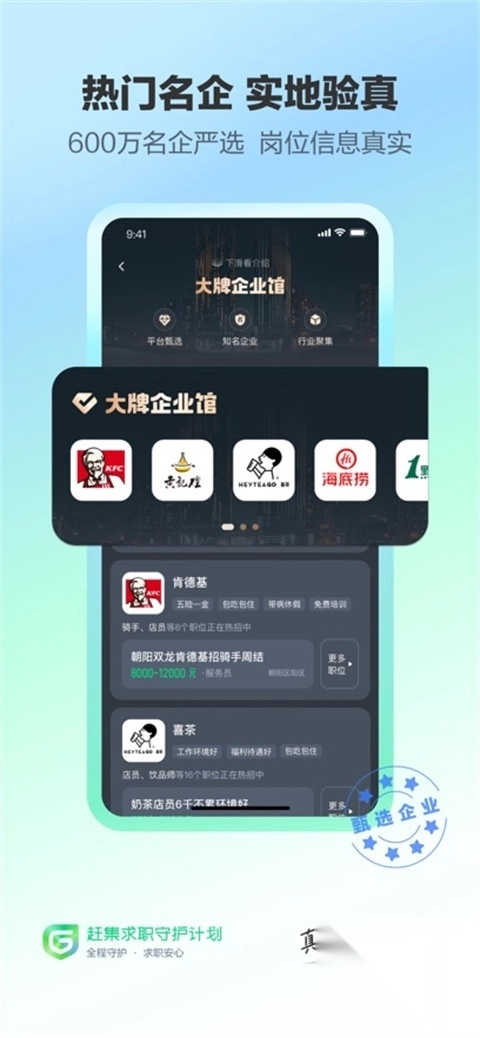 4、【求职守护服务】海量职位信息汇聚,资质认证严格把关,让您求职安心无忧。