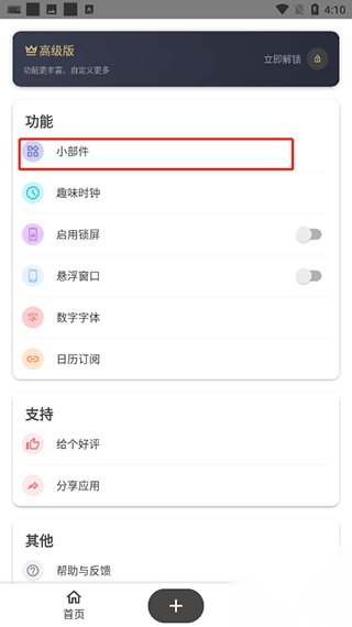 1. 个性化小部件样式规格:1*1、1*4、2*2、2*4